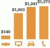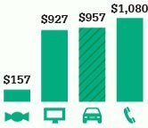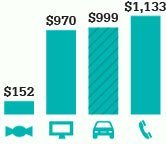 Yet based on the statistics below, car insurance made up only 2.19% of consumer expenses in 2009. Compared to other basic necessities and “extras”, car insurance is still likely to be cheaper than what you pay for your telephone bill each year: