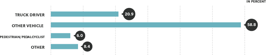 In the analysis of the Large Truck Crash Causation Study conducted by the Federal Motor Carrier Safety Administration, 58.8% of truck crashes were caused by the action of another vehicle, including loss of control
