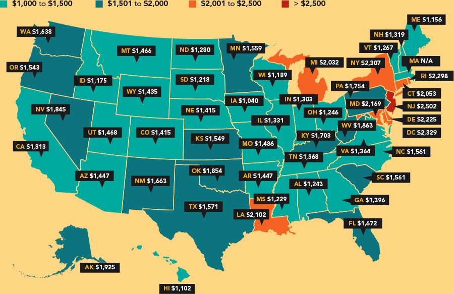 Here is a closer look at annual car insurance coverage by state